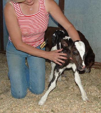 This is Bitty Cow. She was quite a hit in the "pet division" at the county fair with these two little neighbor girls!!!