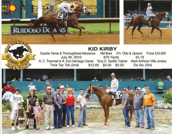 Another specialty we have here is raising orphan babies for other people. Here are some of our stories: This first one is Baby Kirby, registered name, Kid Kirby. It's so much fun to take them from this little creature to the winner's circle!
