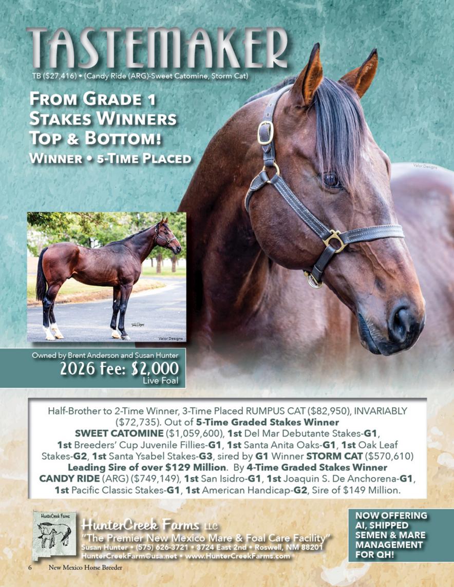 Tastemaker embodies classic Thoroughbred qualities of speed, stamina, and soundness. He possesses the pedigree and athletic attributes to make a significant impact as a sire. His bloodlines and proven lineage make him an excellent choice for your 2026 breeding season.